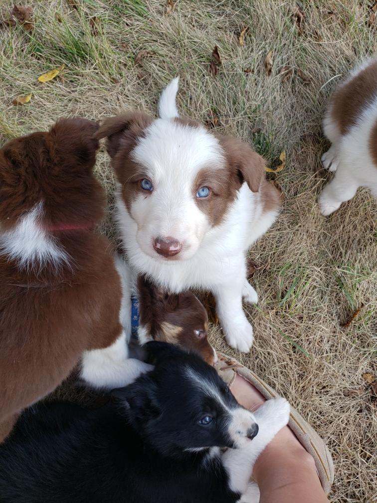 Addie was quick to respond and very helpful throughout the entire process. About two weeks before the puppies were ready to go home, we visited them to see which one might be the best fit for our family. From the moment we met Lavender, we knew she was the one. We love our puppy Lavender very much! She is very sweet, energetic, and she loves to play. She also loves to run and she’s incredibly fast. It was clear she had received some basic training before we brought her home. She lets us know when she needs to go outside, and she has a set eating and sleeping schedule. She’s very sociable and prefers eating when people are around. We’ve already started taking her on walks and teaching her some basic tricks. Lavender has been a wonderful addition to our family, and we are very satisfied with our experience with Floating Axe Border Collies. Thank you!