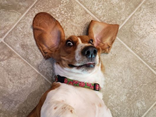 This musical man is happiest chewing toys or snuggling up with our dame Willow. His demeaner is affectionate, submissive and sweet. He is a great family pet
