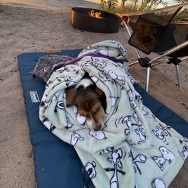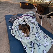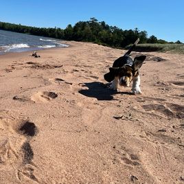 We got back from our road trip to Wisconsin this afternoon. Rosie did great on the road. Great little traveler! We were gone for 17 days and we camped out 14 nights. Rosie had many great experiences including playing in/near Lake Superior, canoe rides, met many dogs and people. She was the life of the party at our wedding picnic in Northern Wisconsin…..