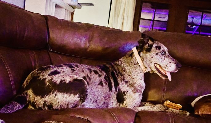 Otis is a male Great Dane. Carefully selected as a great representative of his breed, Matt decided to make him part of their program. Matt has passed Good Dog’s screening process, which involved a review of their breeding practices, environment, and the mental and physical health of their dogs.