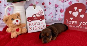 Sissy is a female Dachshund. Carefully selected as a great representative of her breed, Brianna decided to make her part of their program. Brianna has passed Good Dog’s screening process, which involved a review of their breeding practices, environment, and the mental and physical health of their dogs.