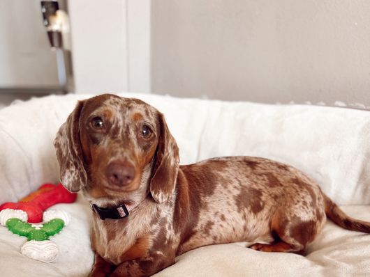 Bristol is a female Dachshund. Carefully selected as a great representative of her breed, Brianna decided to make her part of their program. Brianna has passed Good Dog’s screening process, which involved a review of their breeding practices, environment, and the mental and physical health of their dogs.