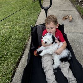 I'm Marty M., the breeder behind Florida Mini Bernedoodles located in Auburndale, FL. All of our puppies are born and raised in our home and played with daily by ourselves and our children. Mama and Daddy are both health/genetics tested and cleared. Puppies have a one year health guarantee. Upon puppy pickup, we will send home a special puppy food bag to help in the food transition.