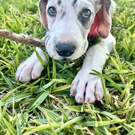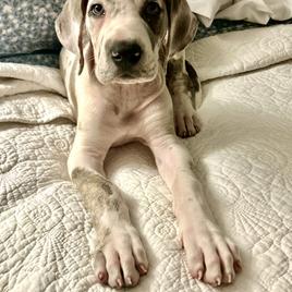 Jessica was very responsive and answered the questions I had about bringing home a Great Dane. Our puppy, Athena, has been such a blessing to our home and we couldn't be happier with the experience. She has a wonderful temperament and is so happy to have her Doberman "mom". They became fast friends/littermates. We look forward to Athena's coming growth. She gets her next shots on Wednesday.