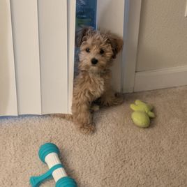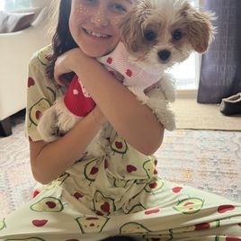 The experience of getting our puppy from Emily was wonderful! She was very flexible with timing of picking up the puppy and the communication during the whole process was very smooth and timely. We were looking for a pup with a calm temperament and talking with Emily really helped gain confidence we chose the right puppy for our family. The puppy turned out to be exactly how Emily had described she would be - calm, gentle, and very friendly with my toddler and cat. We can really tell that Emily took great care for the puppy and are very happy to have her be a part of our family!