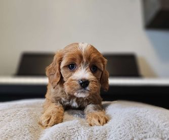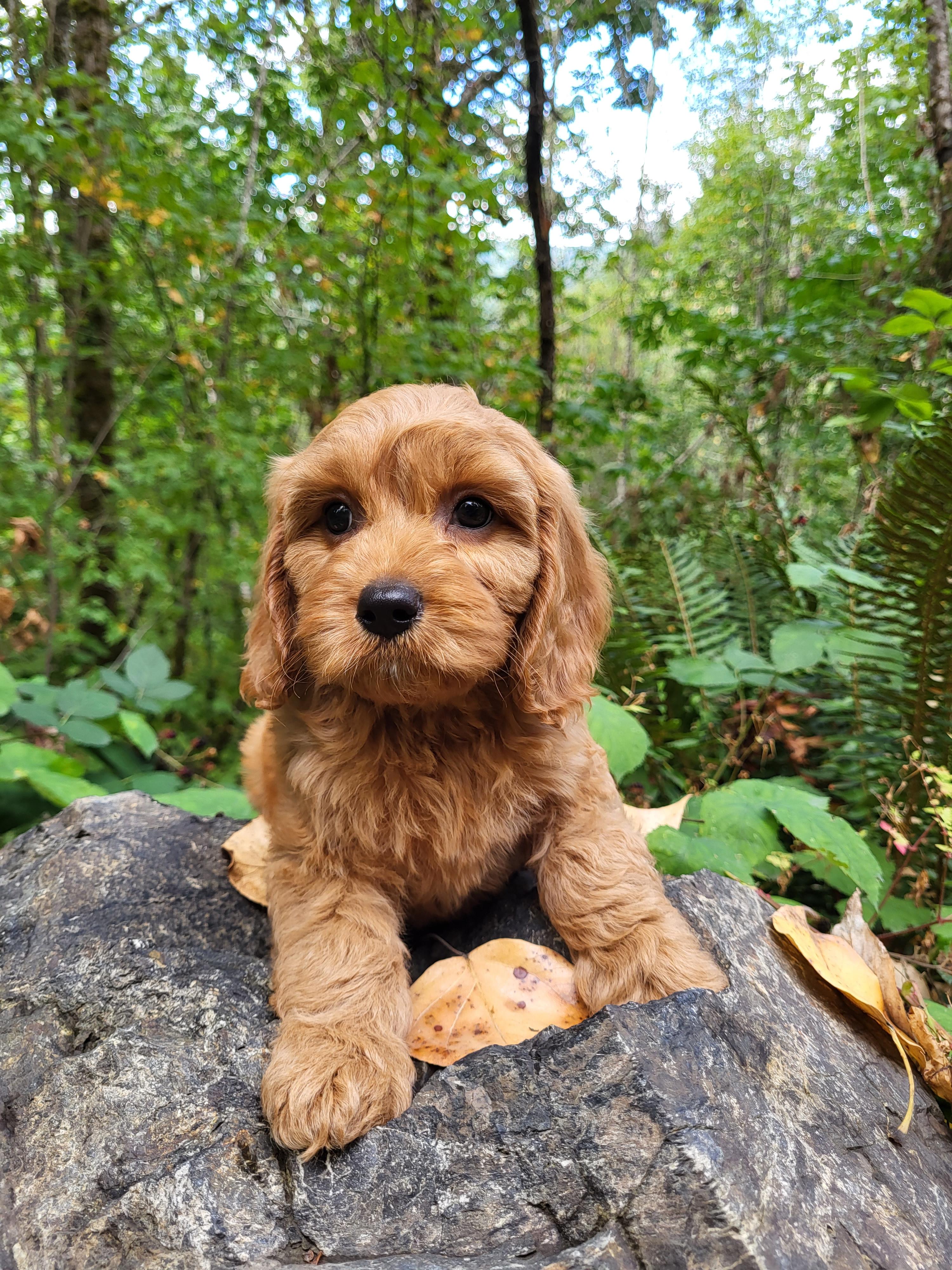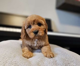 Our Cavapoo puppies include red and apricot. Poodle puppies are red. Colors will vary depending on the parent dogs.