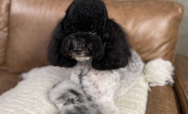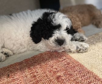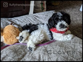 Our family gave us our first poodle 4 years ago; June. We chose not to breed her, although we wish we did, she’s a gorgeous apricot Moyen! We loved her so much though, we decided to get her a little miniature poodle friend; Luna, our black and white Parti poodle. We decided to breed Luna. She has the most wonderful personality, and features, perfectly balanced poodle traits!