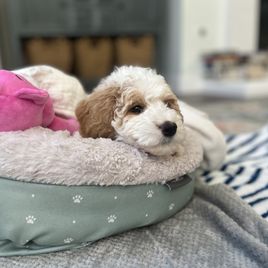 I'm Shelly M., the breeder behind Fluffy Puppy Mini Doodles LLC located in Corona, CA. Puppies are mini Goldendoodles, VERY light to Non-shedding and highly intelligent. The loyalty and loving disposition of this breed are simply the best! We put a great deal of effort into raising our litters to ensure our puppy families will have the best experience raising their new family members.
