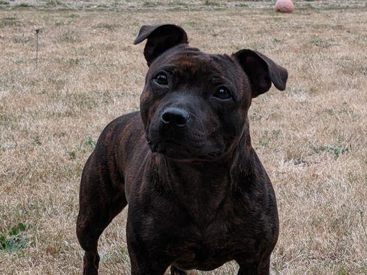 Pirate is a male Staffordshire Bull Terrier. Carefully selected as a great representative of his breed, Sarah decided to make him part of their program. Sarah has passed Good Dog’s screening process, which involved a review of their breeding practices, environment, and the mental and physical health of their dogs.