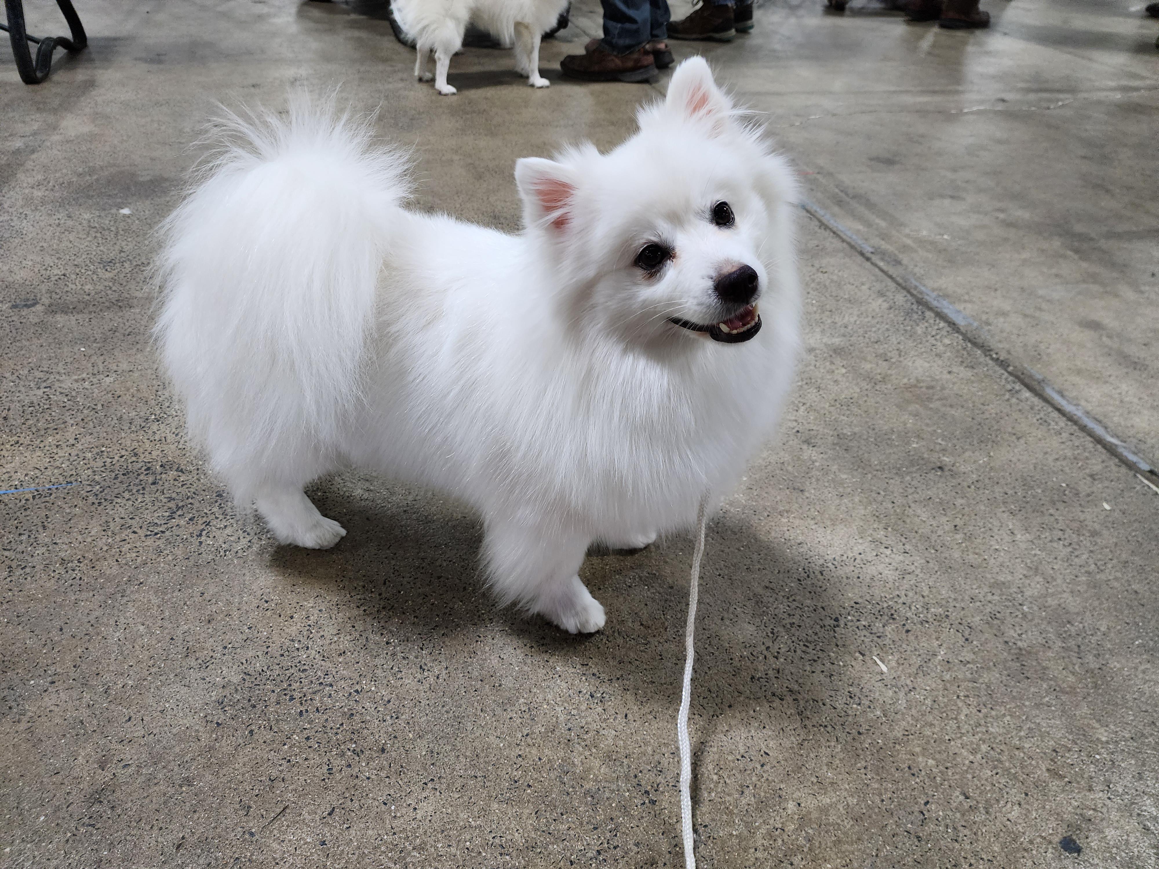 Nimbus is a female American Eskimo Dog. Carefully selected as a great representative of her breed, Cecilia decided to make her part of their program. Cecilia has passed Good Dog’s screening process, which involved a review of their breeding practices, environment, and the mental and physical health of their dogs.