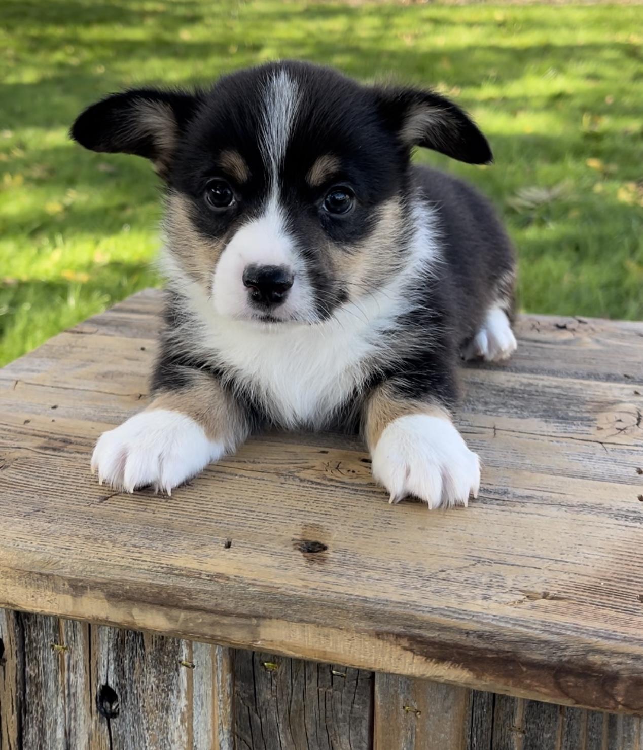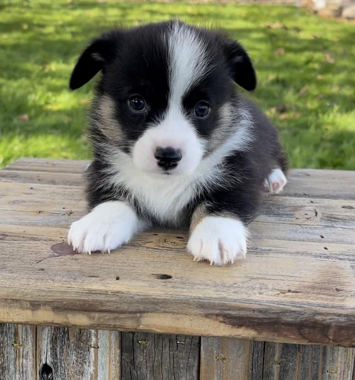 Our Pembroke Welsh Corgi puppies include sable, blue, white and red, and black and tan. American Corgi puppies include sable merle and white, sable and white, black and tan, and blue merle and white. Colors will vary depending on the parent dogs.