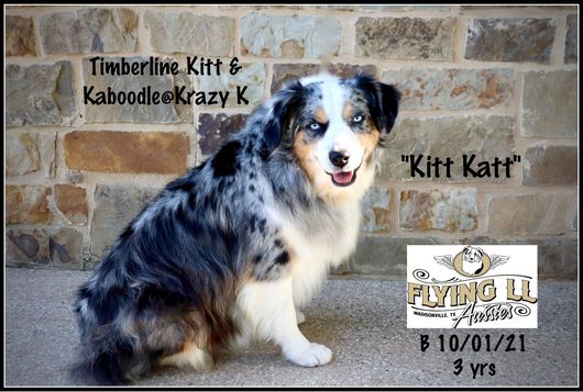 Kitt Katt is a female Miniature Australian Shepherd about 4 years old. Carefully selected as a great representative of her breed, Leslie decided to make her part of their program. Leslie has passed Good Dog’s screening process, which involved a review of their breeding practices, environment, and the mental and physical health of their dogs.