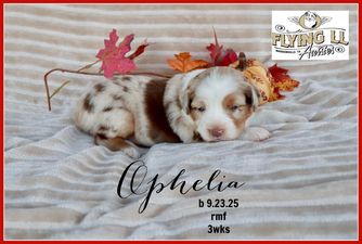 I'm Leslie L., the breeder behind Flying LL Aussies located in Madisonville, TX. We understand the responsibility of purposefully breeding in order to do better for the breed and the families that love them! It’s been such a pleasure to be able to watch every stage of puppy life! We’re so lucky to be able to do this and match wonderful families with our perfect puppies.