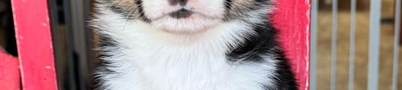 Ozzy is a black and white AKC Cardigan Welsh Corgi.
