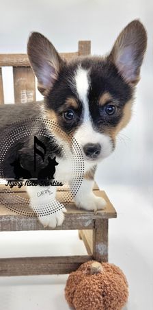 I'm Cassie G., the breeder behind Flying Note Shorties located in Casper, WY. My passion is my dogs. I love each and every one of them as if they were one of my children. They go on rides to get treats, hiking on our property, and lounging around. Currently we offer standard coat and fluffy coat corgis including colors of tris, bluies, mismarks, and CKC merles.