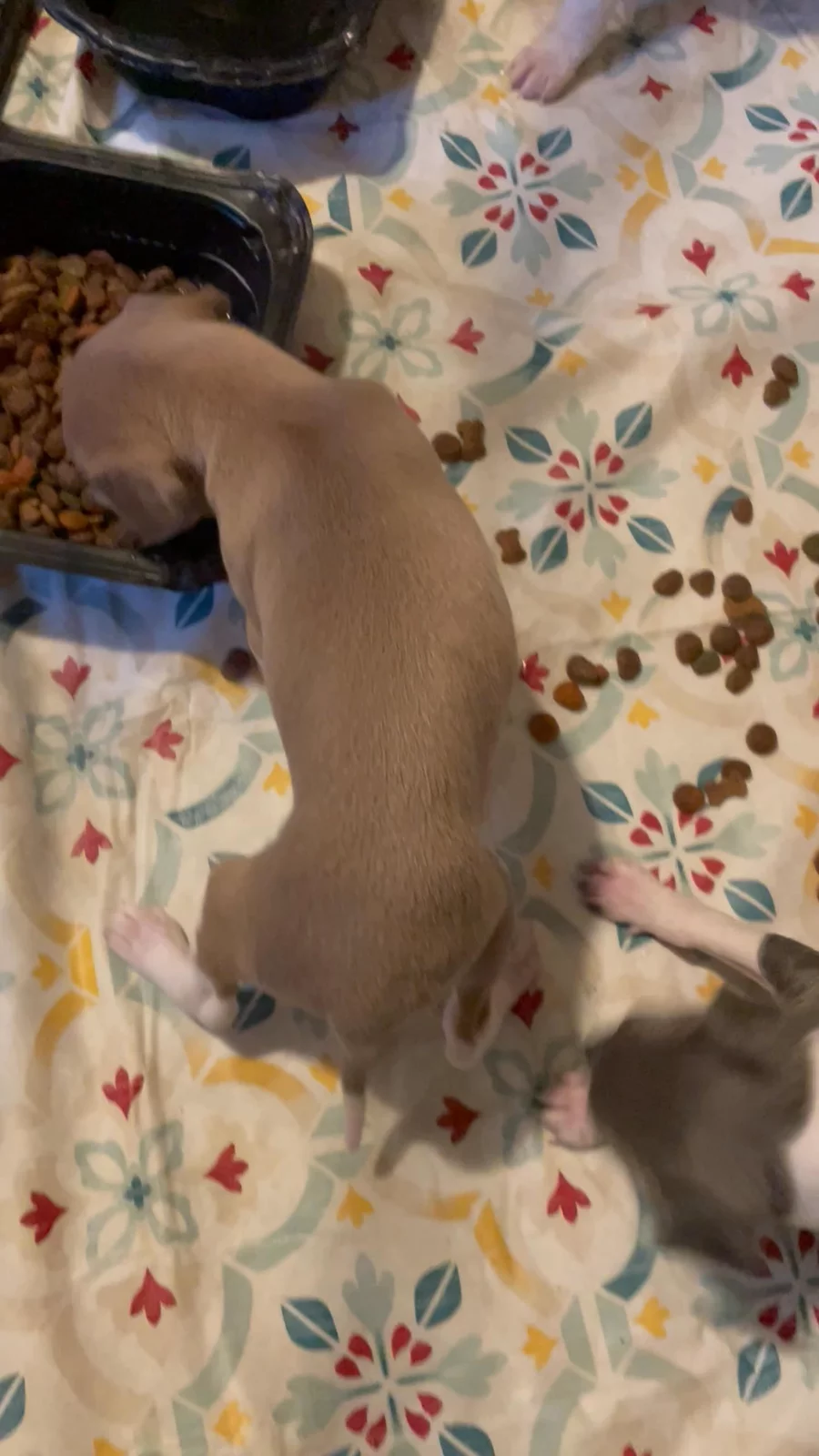 The babies are 4 weeks old today! They are slowing personalities more and more each day 🥰 only one puppy is available at this time (grey boy #3)