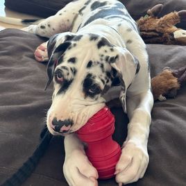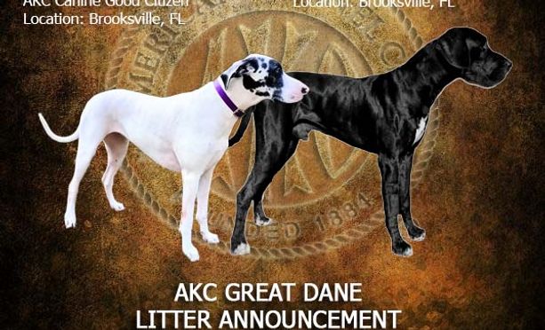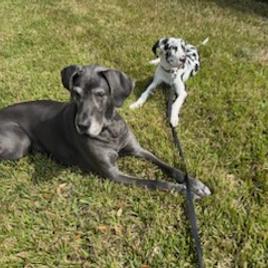 I'm Laura T., the breeder behind Follow My Lead Great Danes located in Brooksville, FL. I am a professional dog trainer, and I breed with a focus on temperament and health. Our dogs work hard, play hard, love hard & are part of the family. We prepare all our pups to thrive in their future jobs and families with specialized training to be confident, well adjusted adult dogs.