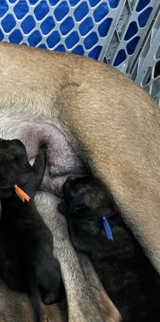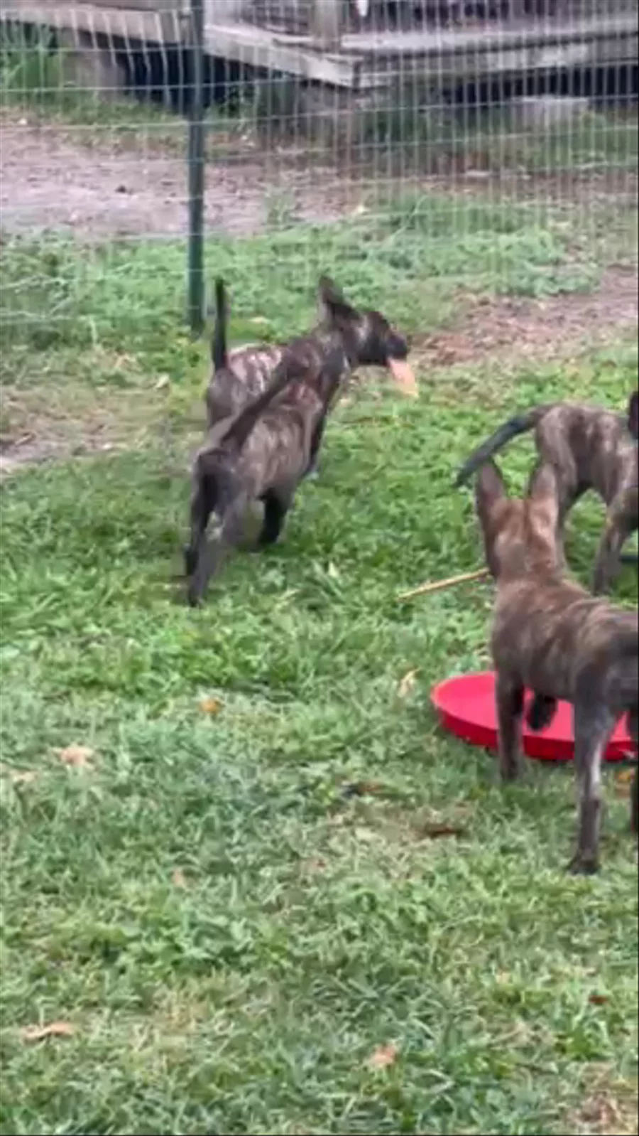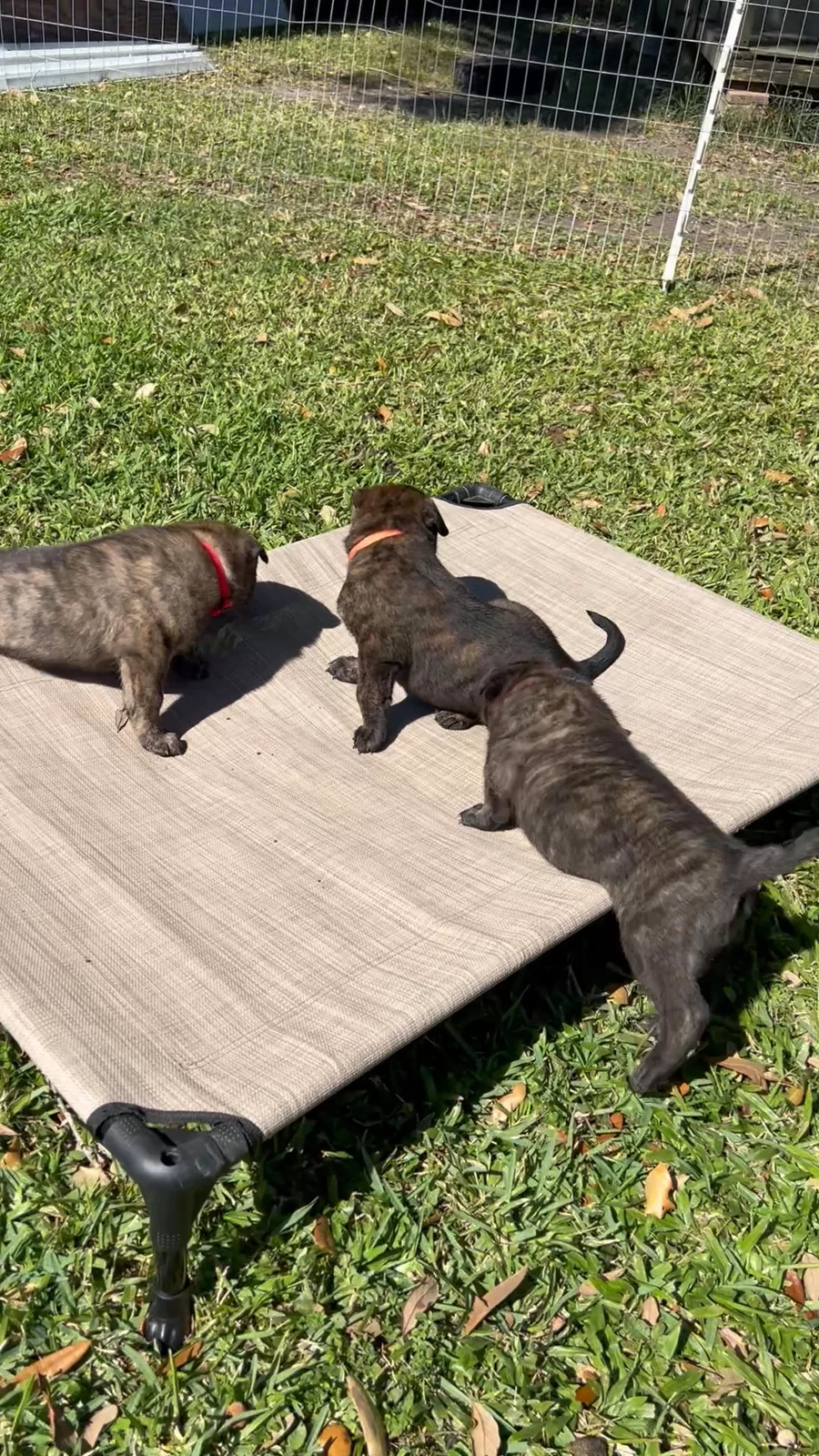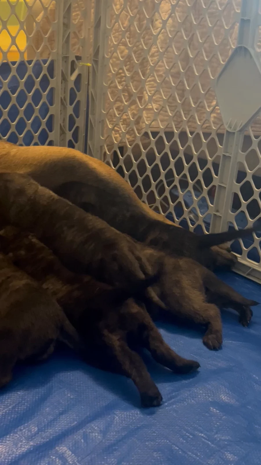 Our puppies include black brindle and gold brindle. Colors will vary depending on the parent dogs.