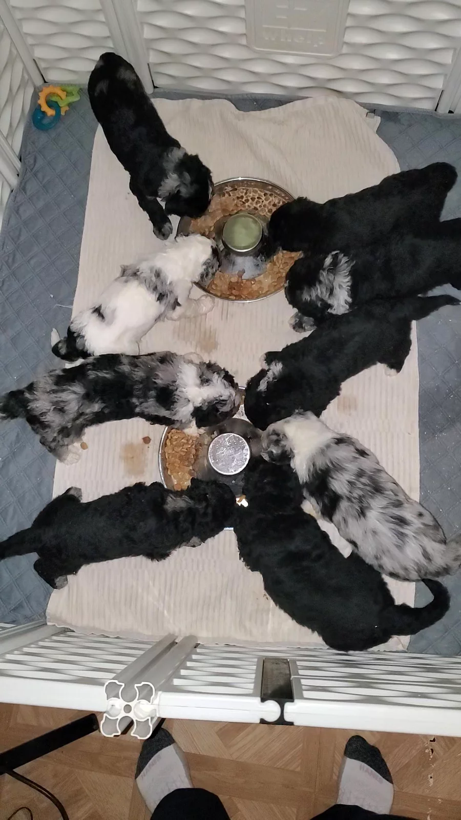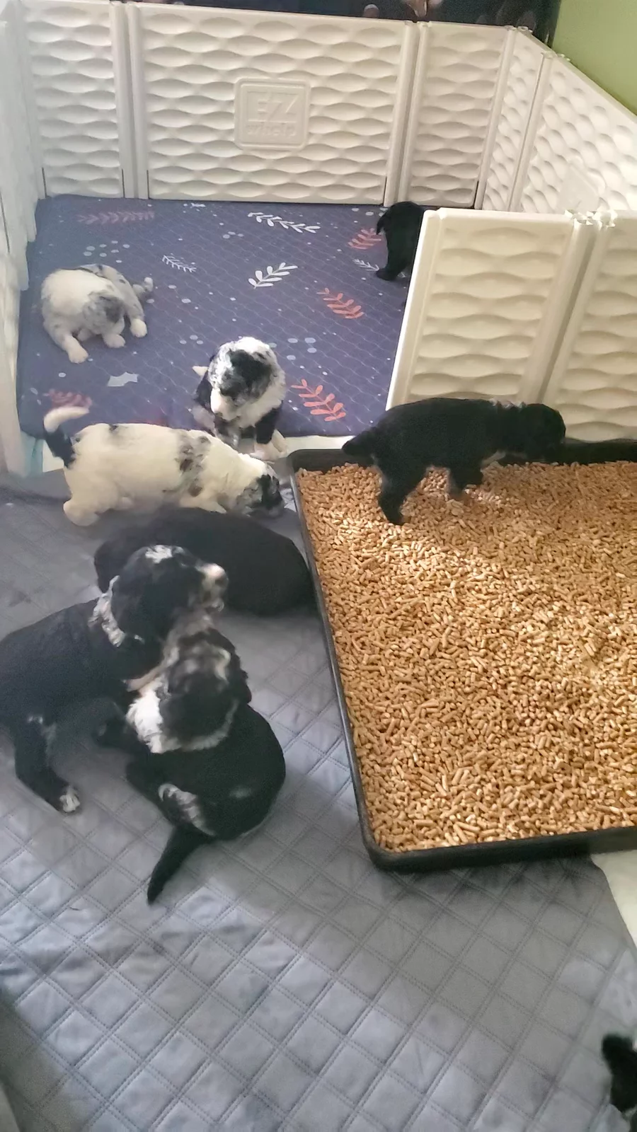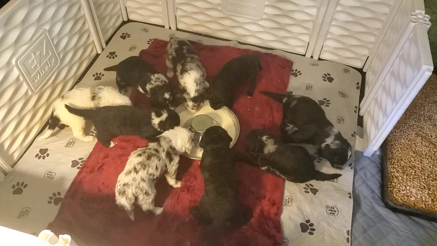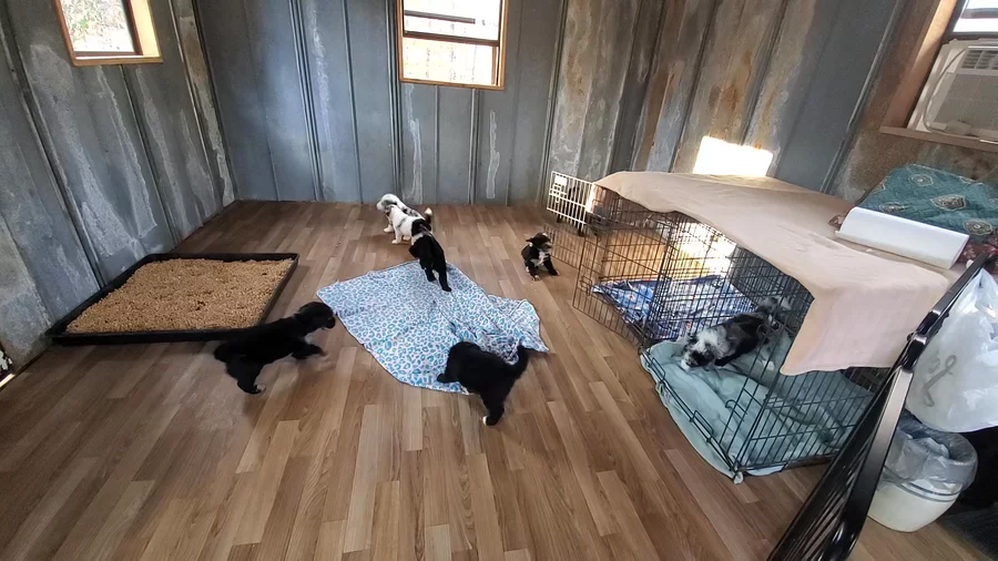 I raise my puppies like family. I take pride in each & every one. From the time they are born, they are raised in my livingroom & once potty training is getting established, then transitioned into their own building with outdoor play run. They begin potty training in pellet boxes & when weather allows have free range to go outdoors & potty. This makes the transition to their new homes easier on the new families. They are also started on crate training & sound desensitization.