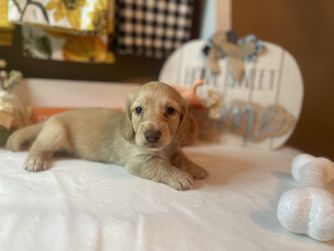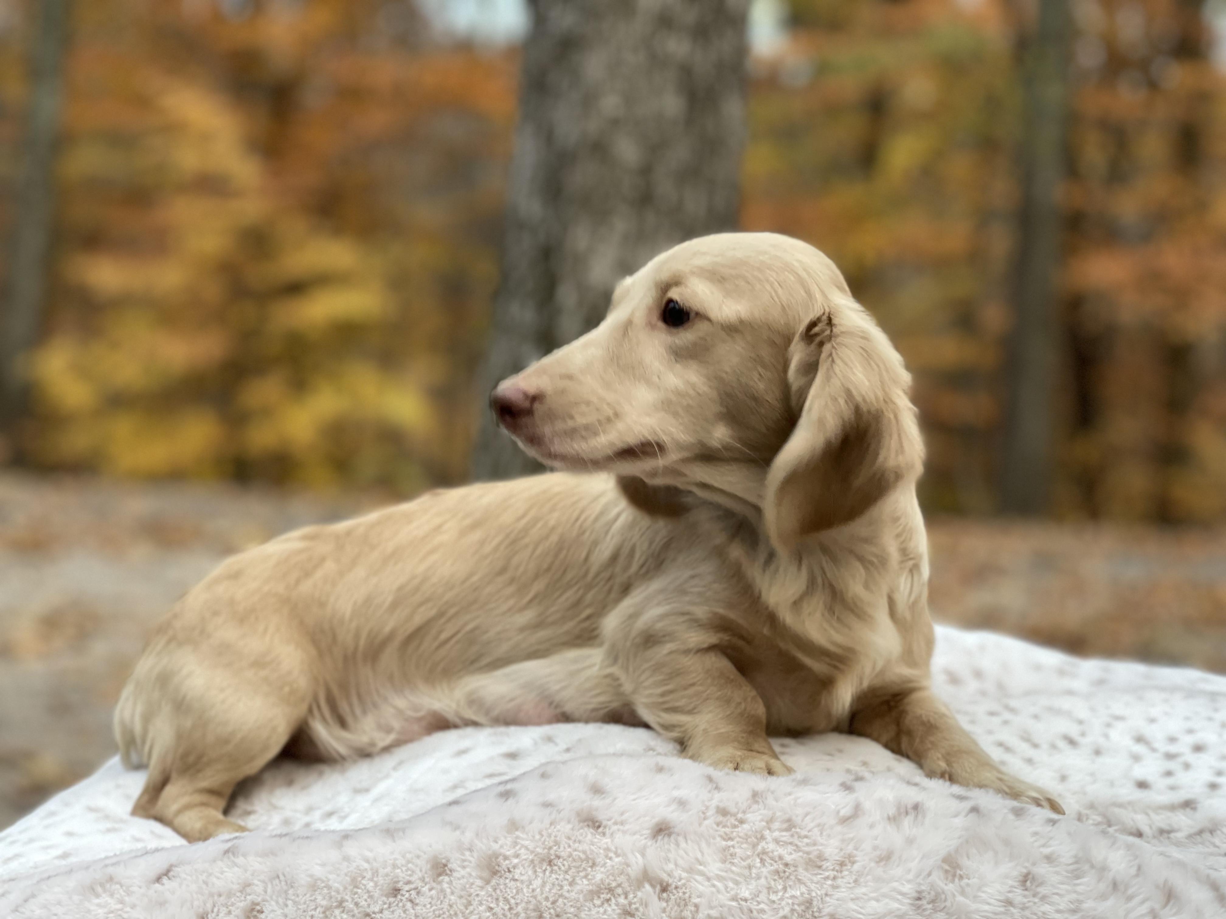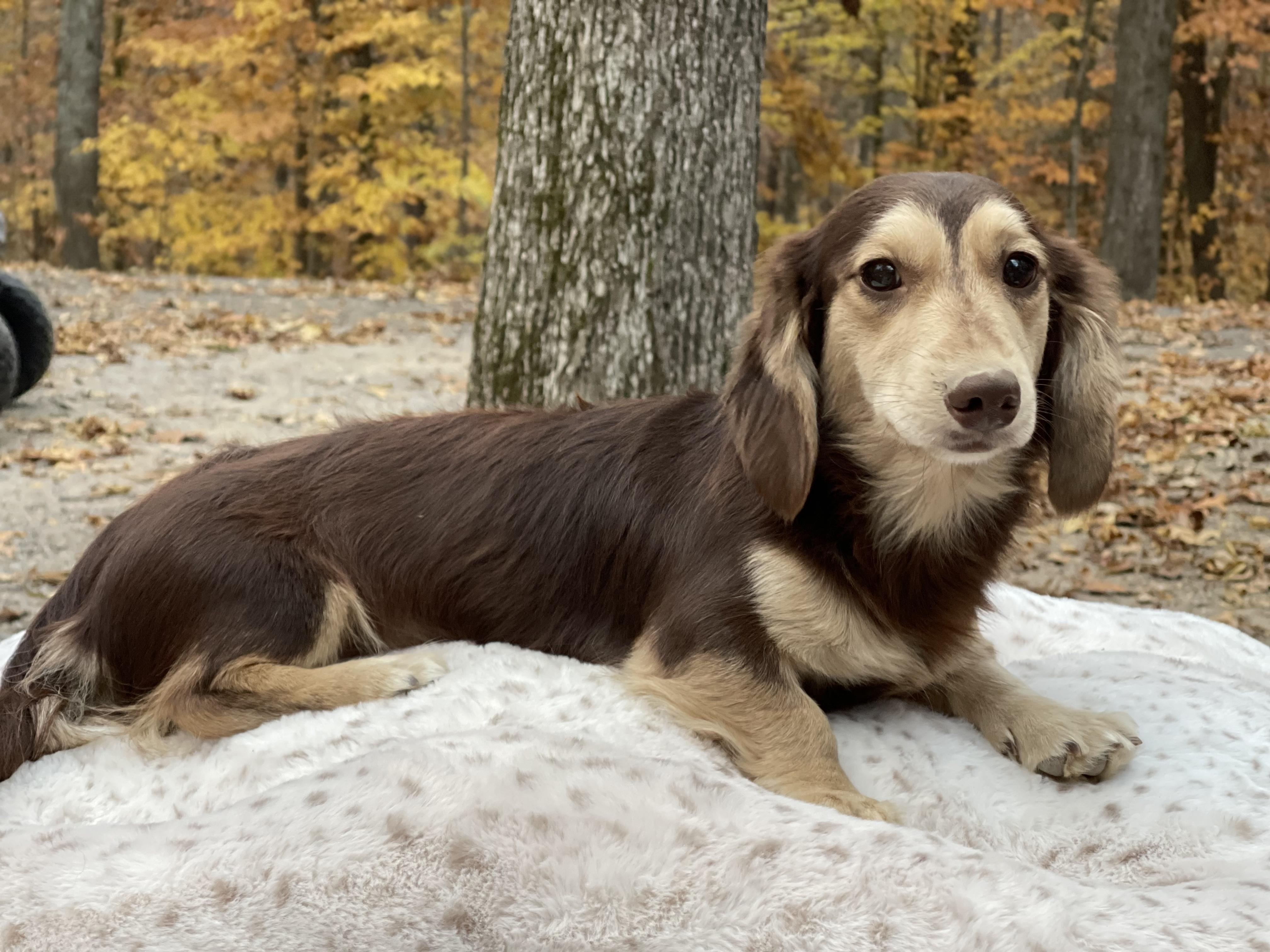 Cookie is a female Dachshund. Carefully selected as a great representative of her breed, Shana decided to make her part of their program. Shana has passed Good Dog’s screening process, which involved a review of their breeding practices, environment, and the mental and physical health of their dogs.