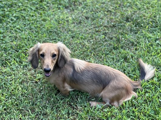 Cashmere is a female Dachshund. Carefully selected as a great representative of her breed, Gladys (Amy) decided to make her part of their program. Gladys (Amy) has passed Good Dog’s screening process, which involved a review of their breeding practices, environment, and the mental and physical health of their dogs.