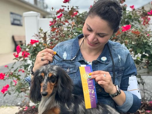Poppy is a female Dachshund. Carefully selected as a great representative of her breed, Gladys (Amy) decided to make her part of their program. Gladys (Amy) has passed Good Dog’s screening process, which involved a review of their breeding practices, environment, and the mental and physical health of their dogs.