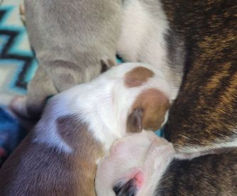 Babies and Mamma are only handled by myself for the 1st 2 wks. Hands on and all in with Mamma through her whole birthing time. Vet checked at 3 days old & Mamma also