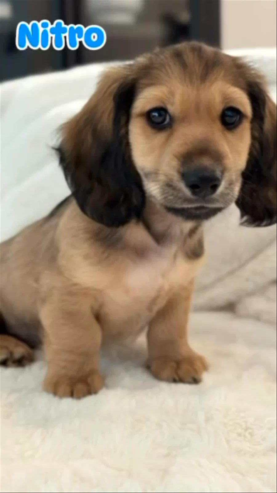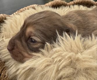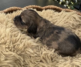 “We raise AKC-registered long-haired miniature dachshunds with love and care. Pricing includes AKC papers, health records, vaccinations, and a starter pack. Contact us for details! A non-refundable deposit is required to reserve your puppy. The deposit will be applied toward the total purchase price. Puppies are reserved on a first-come, first-served basis. Contact us for details!”
