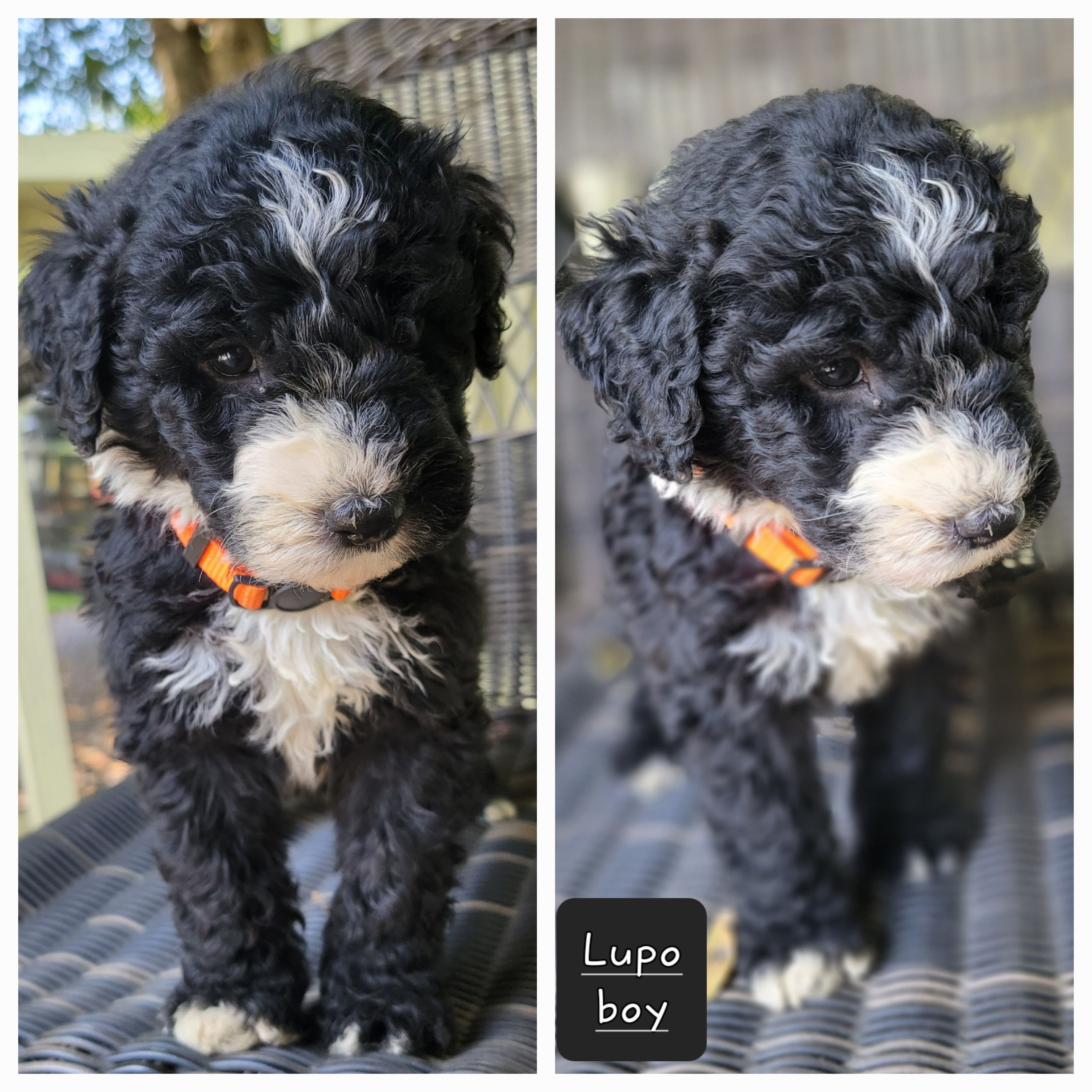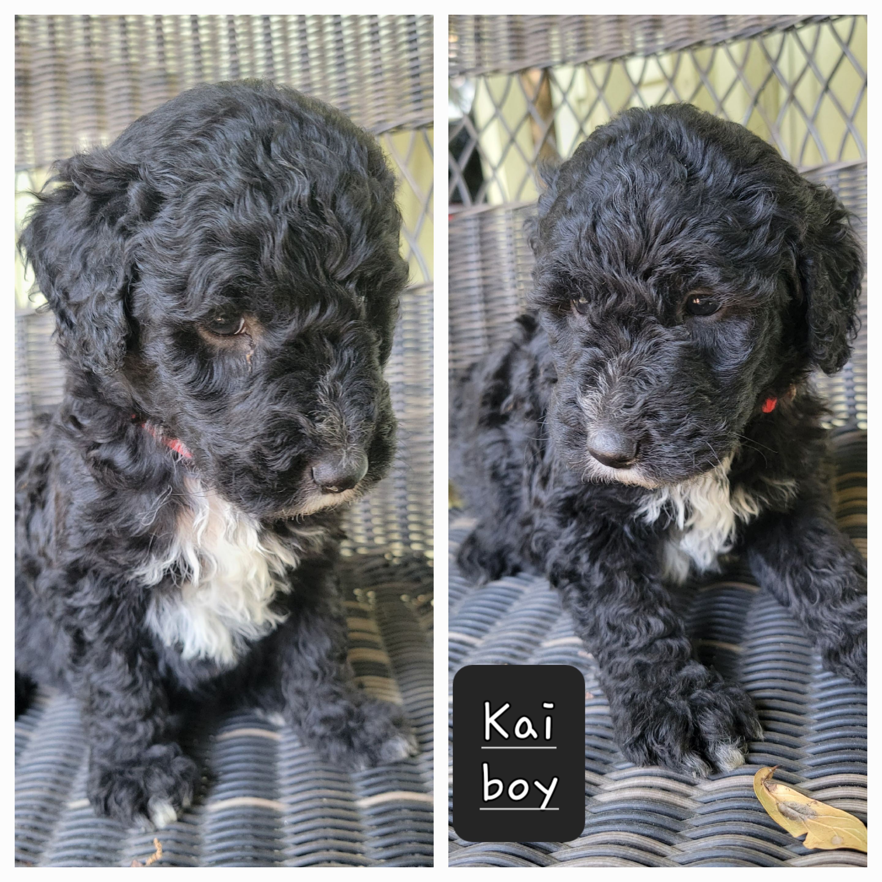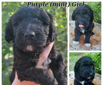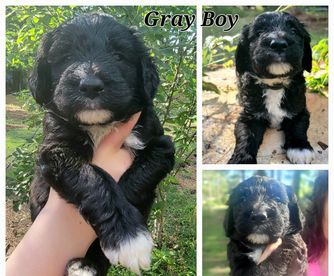 Poodle puppies are standard size. Sheepadoodle puppies are standard size. Sizes will vary depending on the parent dogs.