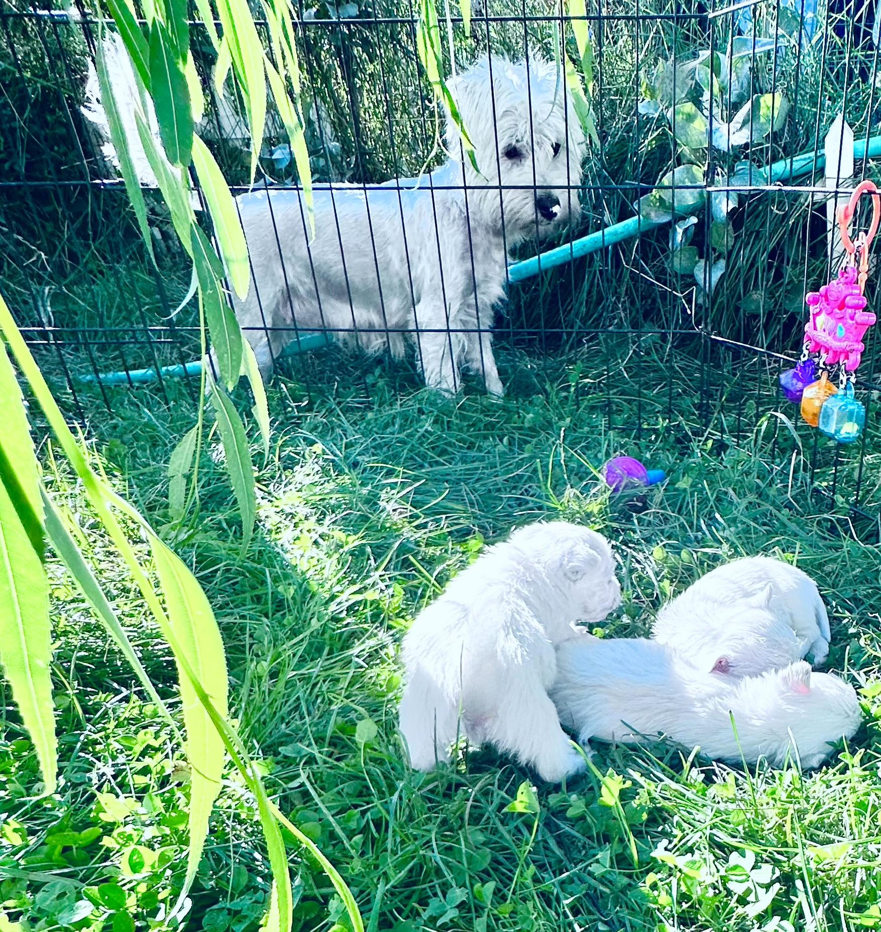 Years ago I wanted another westie I was disappointed in the options out there. I decided I’d breed my girl. I found so many wonderful people who were trying to find a Westie. I knew I could bring something to the table. I got an exceptional male,he’s the daddy to all my litters. It’s been about 10+ years I’ve been breeding. I love it, and take great pride in my parents health as well as the pups!