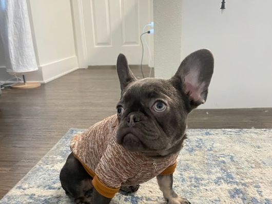 Hazel is a gentle little French Bulldog with a heart as soft as her velvety ears. Calm and docile by nature, she brings a peaceful presence wherever she goes—content to curl up beside you for a cozy nap or sit quietly, watching the world with those wide, expressive eyes. But don’t let her serene demeanor fool you—Hazel has a quirky streak that shines through in the funniest ways, like the way she insists on sleeping upside down or how she chases her tail in slow, thoughtful circles as if she’s solving a mystery.