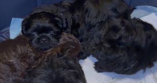 Our Shih Tzu puppies include lilac, cream and white, chocolate, black, black gold and white, and brindle. Australian Shepherd puppies are red tri-color. Colors will vary depending on the parent dogs.