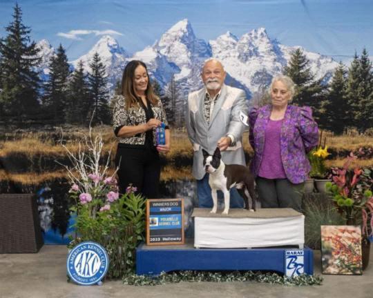 Holly is a female Boston Terrier. Carefully selected as a great representative of her breed, Sharon decided to make her part of their program. Sharon has passed Good Dog’s screening process, which involved a review of their breeding practices, environment, and the mental and physical health of their dogs.