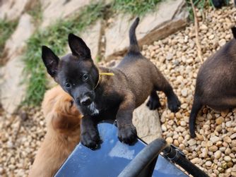 Our Belgian Malinois puppies include fawn sable, mahogany, black, and red sable. Colors will vary depending on the parent dogs.