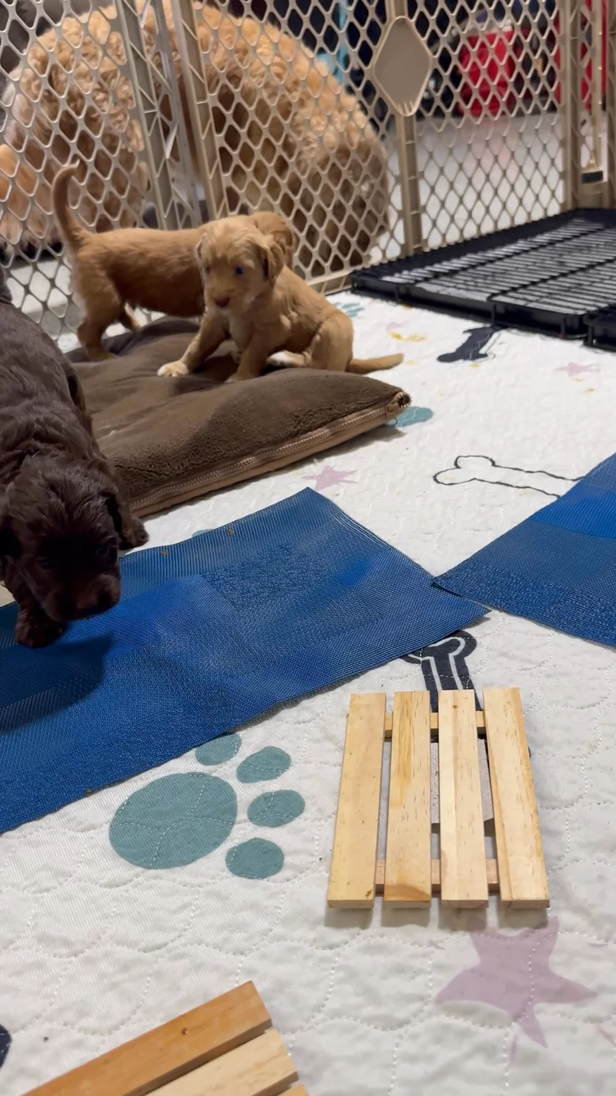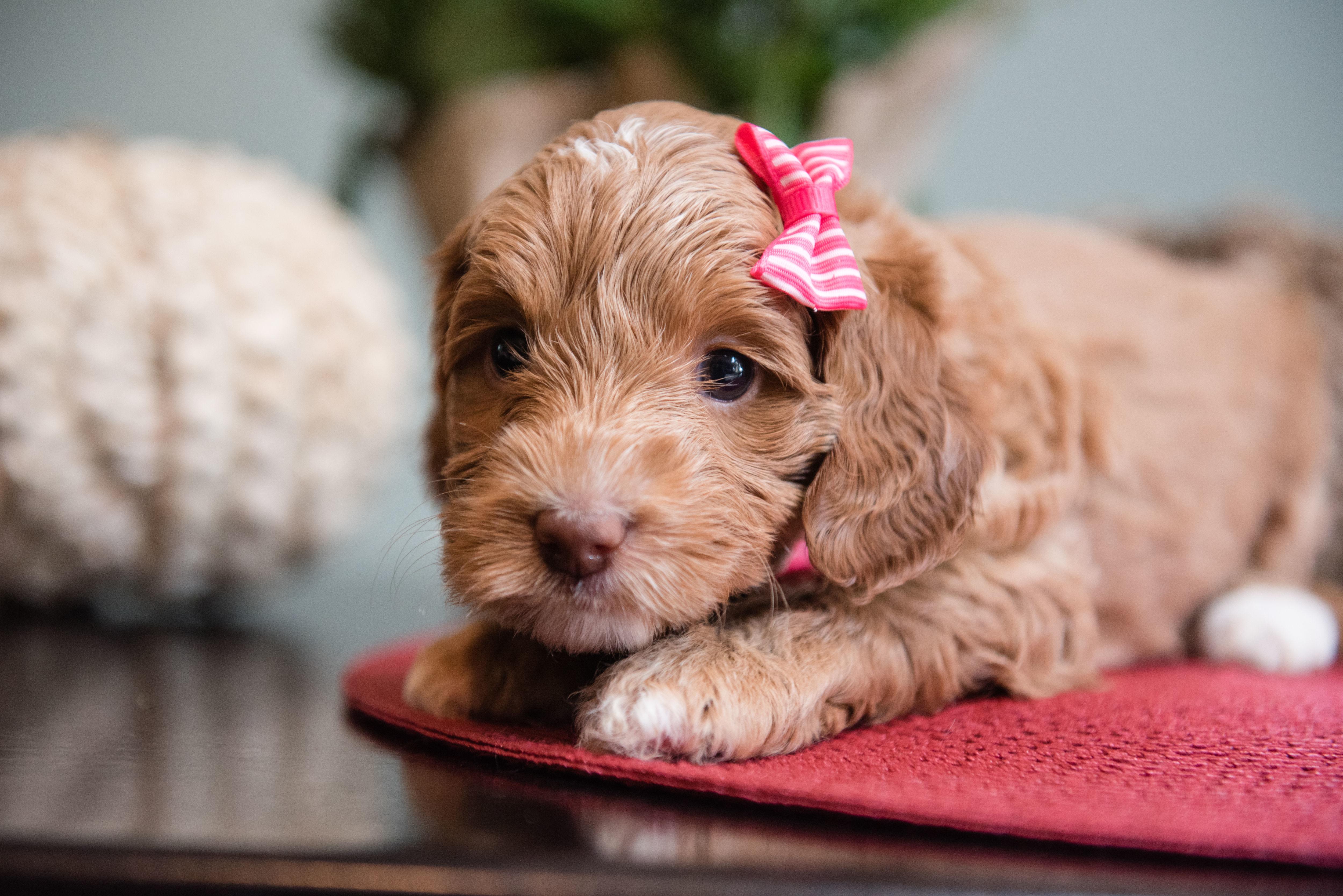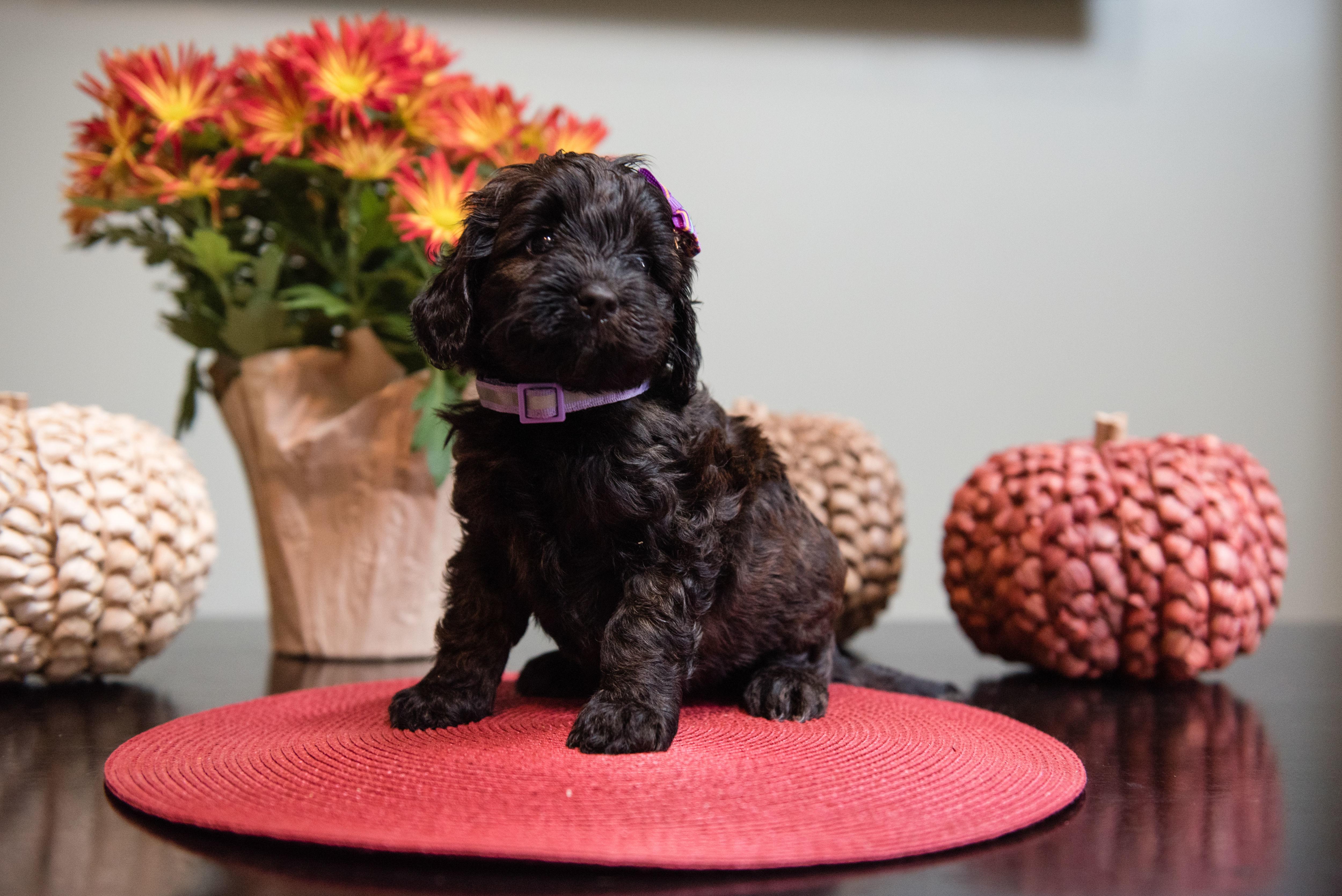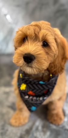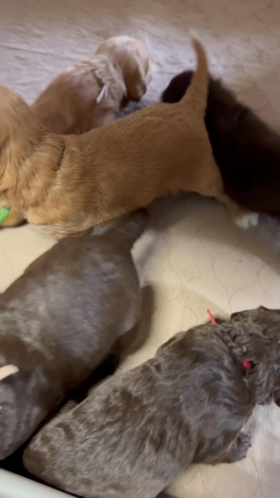Our puppies include caramel cream, caramel red, apricot, cream, chocolate, black, and tri-color. Colors will vary depending on the parent dogs.