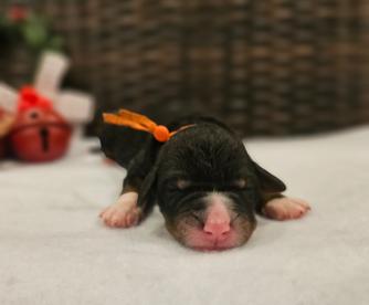 “This includes Vet check and wellness exam, microchip, dewormed per protocol, 1 year health guarantee, potty and crate training introduction, ENS & scent training, and early socializing. Go home box. A $300 non-refundable deposit is required and goes towards the final balance of the puppy. Picking order is based off of when deposit is placed. Selections will be made at 4/5 weeks.”