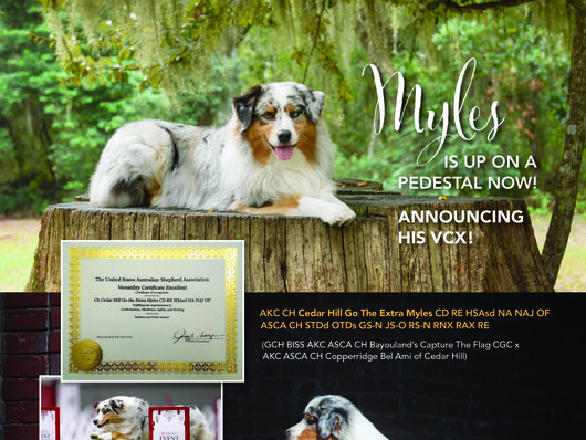 Born 8-11-13. Blue Merle Male. Conformation CH, Performance Star, Herding title holder, Multiple Most Versatile Aussie Qualifier, Versatility Champion Excellent Award