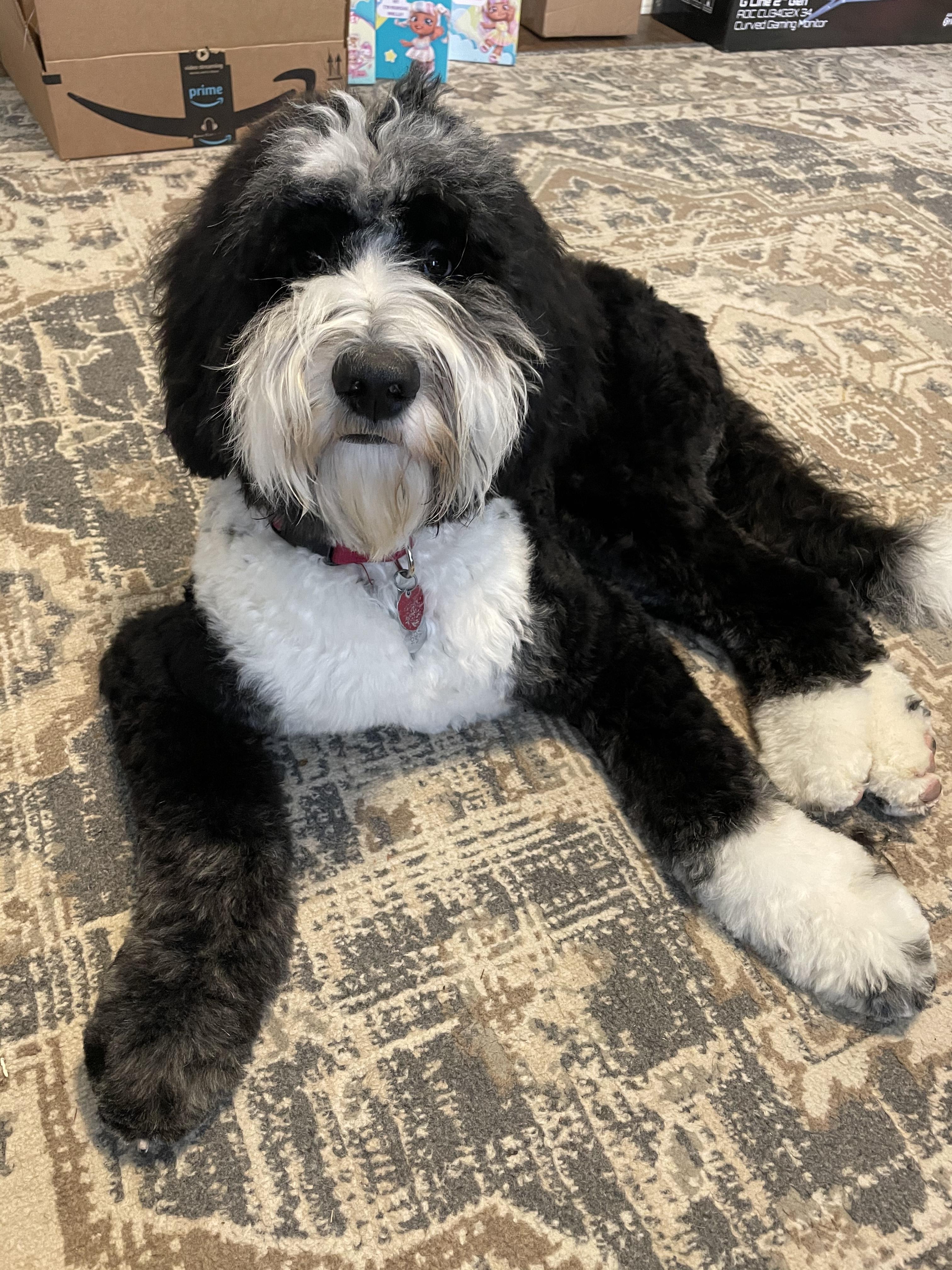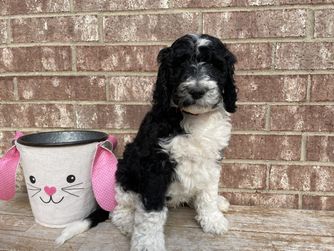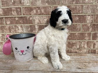 Henry is a male Sheepadoodle. Carefully selected as a great representative of his breed, Annie decided to make him part of their program. Annie has passed Good Dog’s screening process, which involved a review of their breeding practices, environment, and the mental and physical health of their dogs.