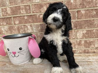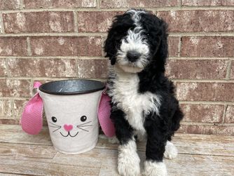 Our Goldendoodle puppies are standard size. Sheepadoodle puppies are standard size. Sizes will vary depending on the parent dogs.