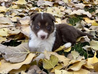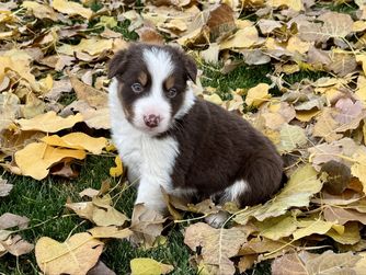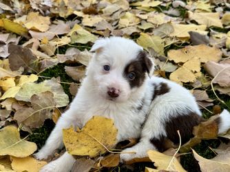 Our puppies include blue merle, black, blue, red, white and blue, white and blue merle, white and red, white ticked, and slate. Colors will vary depending on the parent dogs.