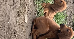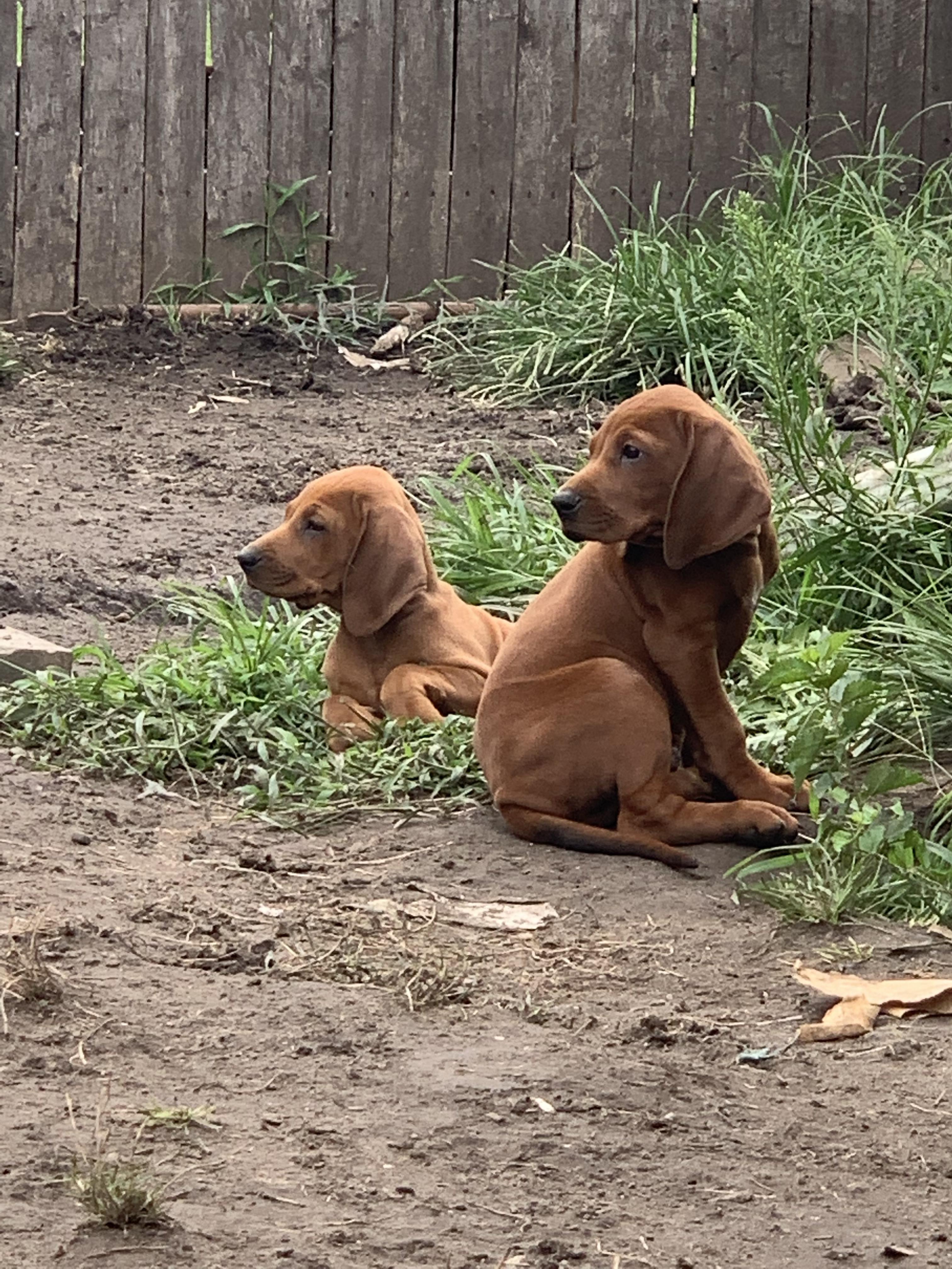 Our Redbone Coonhound puppies are red. Treeing Walker Coonhound puppies are tri-colored. Colors will vary depending on the parent dogs.