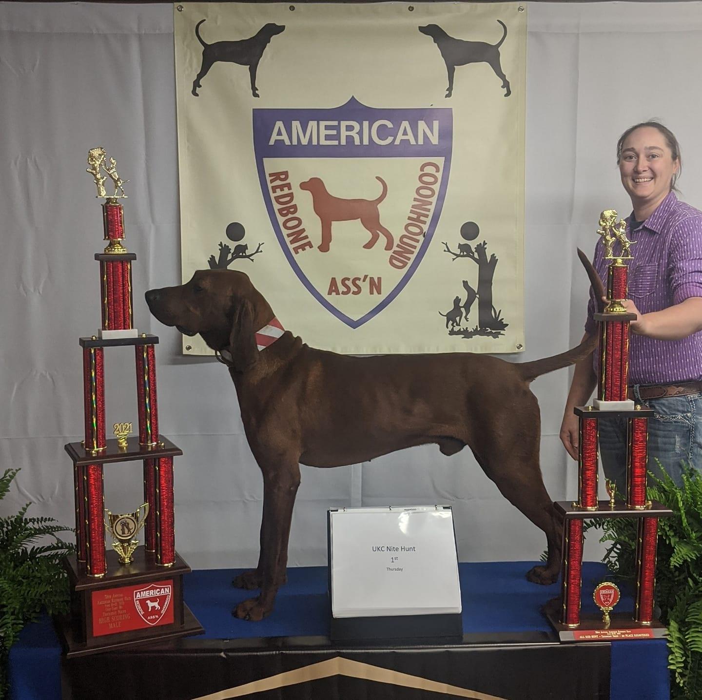 I made the decision to start breeding after finding the right pair of Redbones to cross. I have raised one litter out of my Walker male and they have excelled in the woods but have not bred my Dutch Shepherd male yet. The Dutch Shepherd has just started to prove himself by becoming an excellent tracking dog for wounded game and is just 3 wins away from his conformation title.