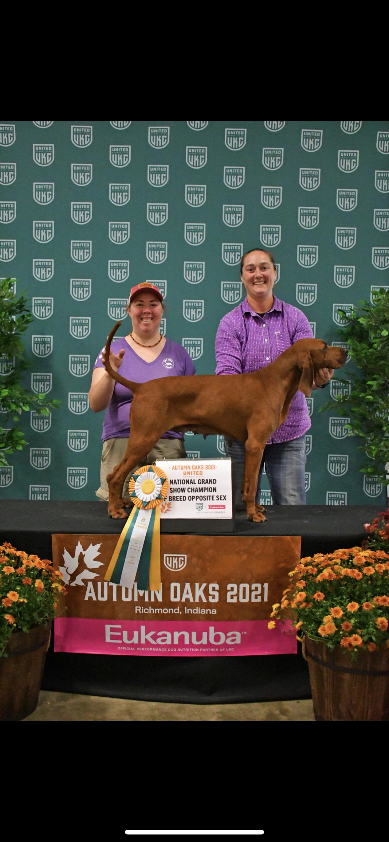 Copper is a male Redbone Coonhound. Carefully selected as a great representative of his breed, Katie decided to make him part of their program. Katie has passed Good Dog’s screening process, which involved a review of their breeding practices, environment, and the mental and physical health of their dogs.