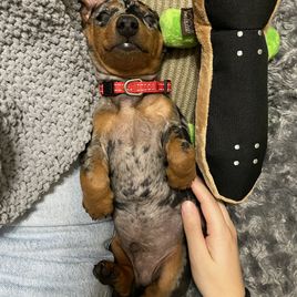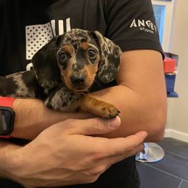 Baby is a female Dachshund. Carefully selected as a great representative of her breed, Kim decided to make her part of their program. Kim has passed Good Dog’s screening process, which involved a review of their breeding practices, environment, and the mental and physical health of their dogs.