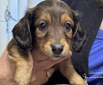 Dachshund puppies have longhaired coats. Coat types may vary depending on the parent dogs.