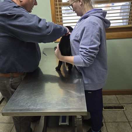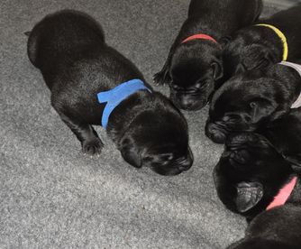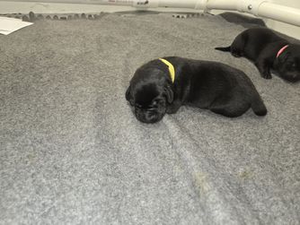 So I have been getting questions about shots and worming. The puppies were wormed 3 times at 2, 4, and 6 weeks old. The puppies will be getting their 1st shots on Wednesday Feb 19th and will get a well puppy check up by our vet in Garner, IA Dr Bruce Schupanitz. Then he will microchip them all when he is done. You will get the microchip and health info in the home coming puppy package.