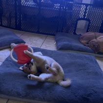 Super sweet, learning to potty train quickly, up to date on vaccines besides rabies.