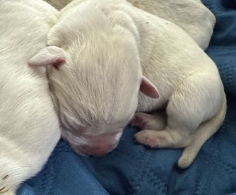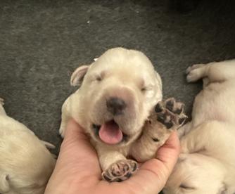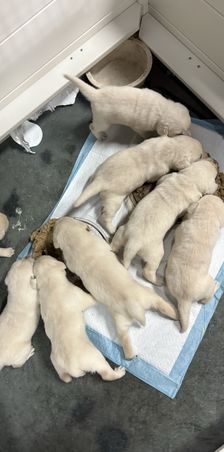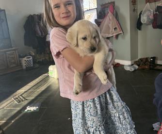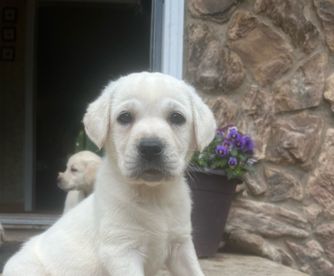 Mary is a very nice person to work with. She is knowledgeable, very sweet, and you can tell her and Her family love raising the labs. Our British Lab is awesome. He is smart, goofy, and his calm temperament is perfect for us. Everyone in our family loves him. He is currently almost 3 months and is growing fast! I would highly recommend her if this is the kind of lab you are looking for.