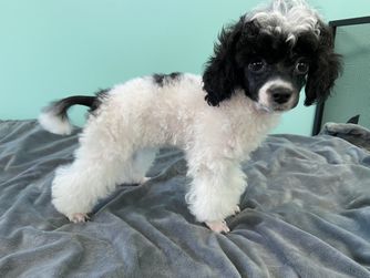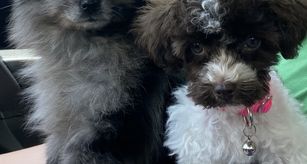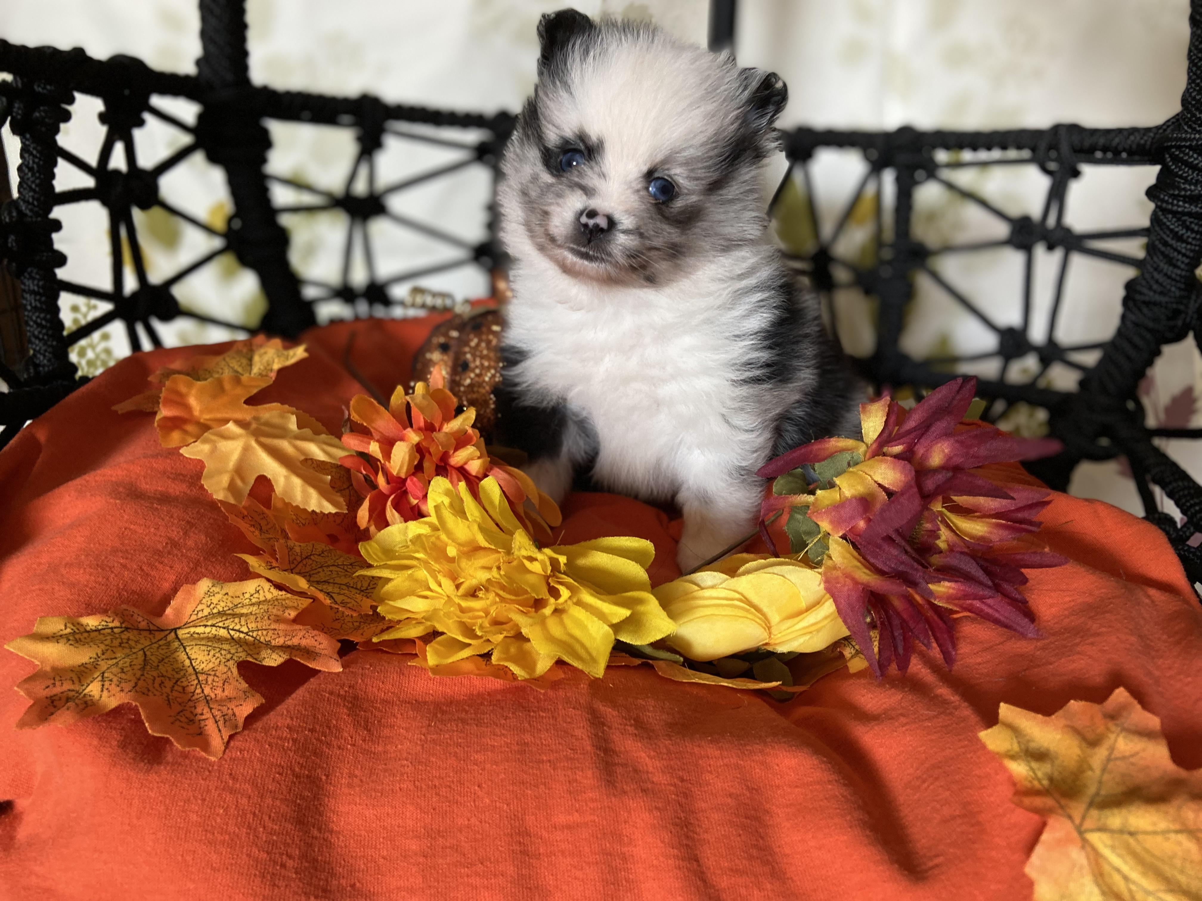 Our Pomeranian puppies include tri-colored, black and tan, and blue merle. Poodle puppies are parti. Colors will vary depending on the parent dogs.