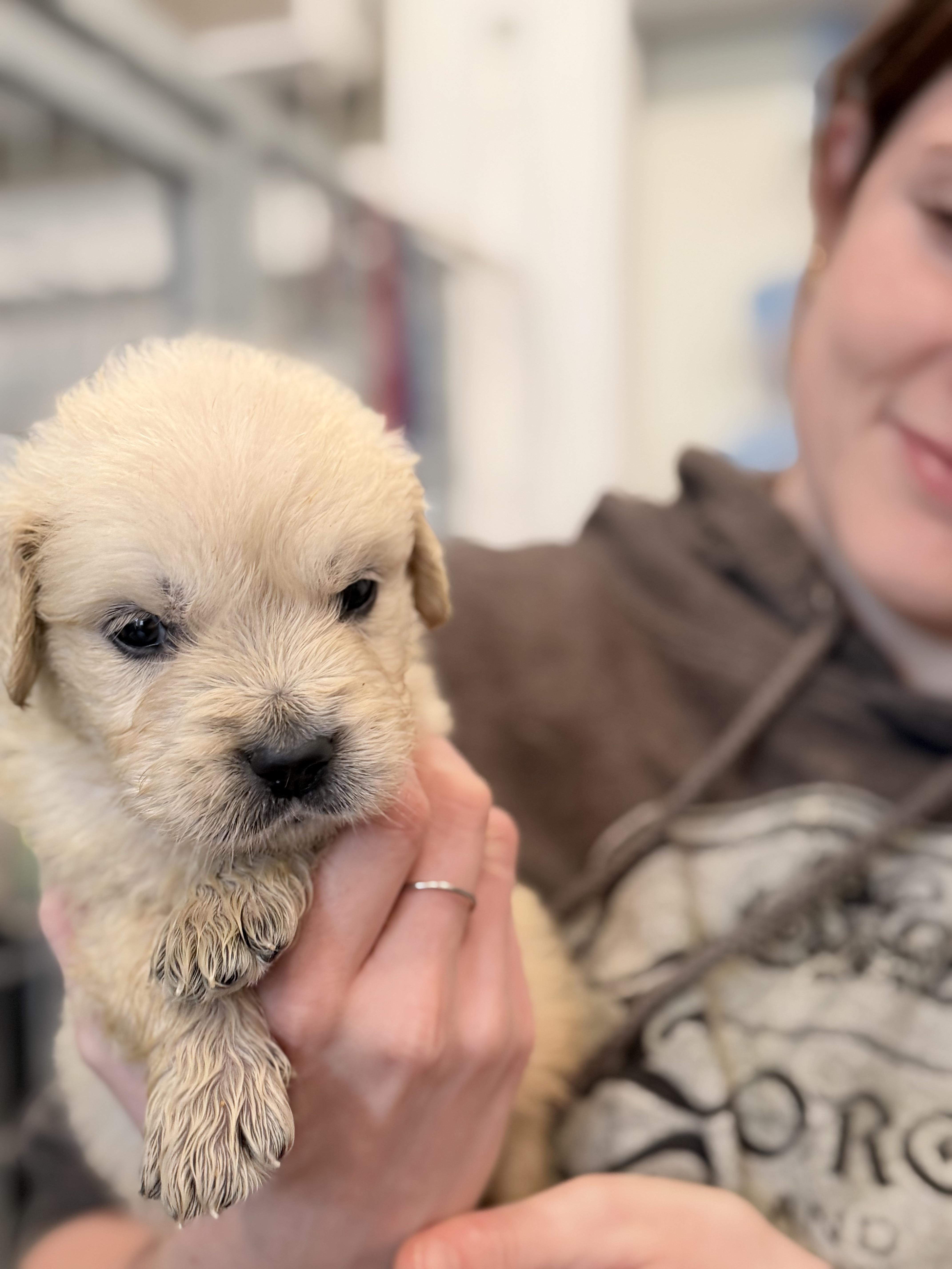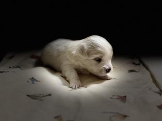 Our Coton de Tulear puppies are white. Golden Retriever puppies are golden. Colors will vary depending on the parent dogs.